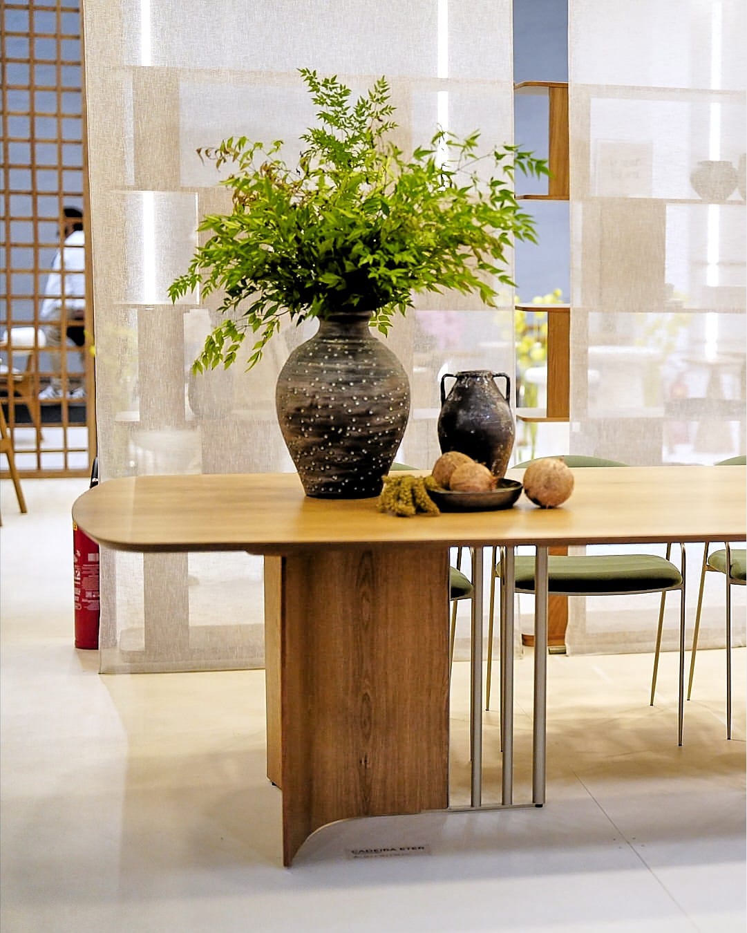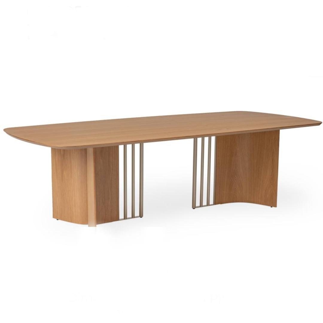 A mesa de jantar Harpa é inspirada no conceito de ressonância, traduzindo harmonia e elegância em cada detalhe. Sua base impressiona pelo contraste entre arcos de madeira refinados e tubos metálicos laqueados, criando uma composição de formas e texturas que se adapta em qualquer ambiente.
